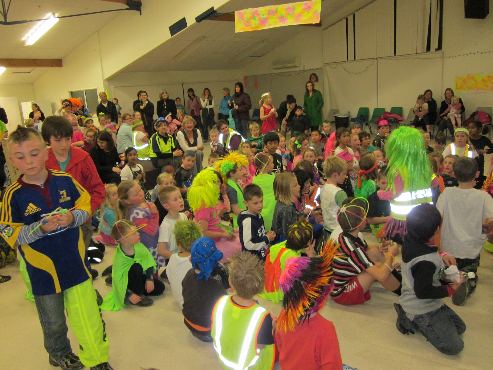 It was the Junior Disco time again tonight. The hall was decorated with a fluoro theme and everyone looked amazing as they arrived wearing bright brilliant colours. We danced, did the limbo, had competitions and loved being together. Thank you School Council for organising this event for us.